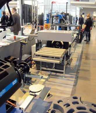 Bezpieczna i wygodna w użyciu klatka ochronna do pompowania kół łączy się z pozostałymi urządzeniami za pomocą modułowych stołów rolkowych |