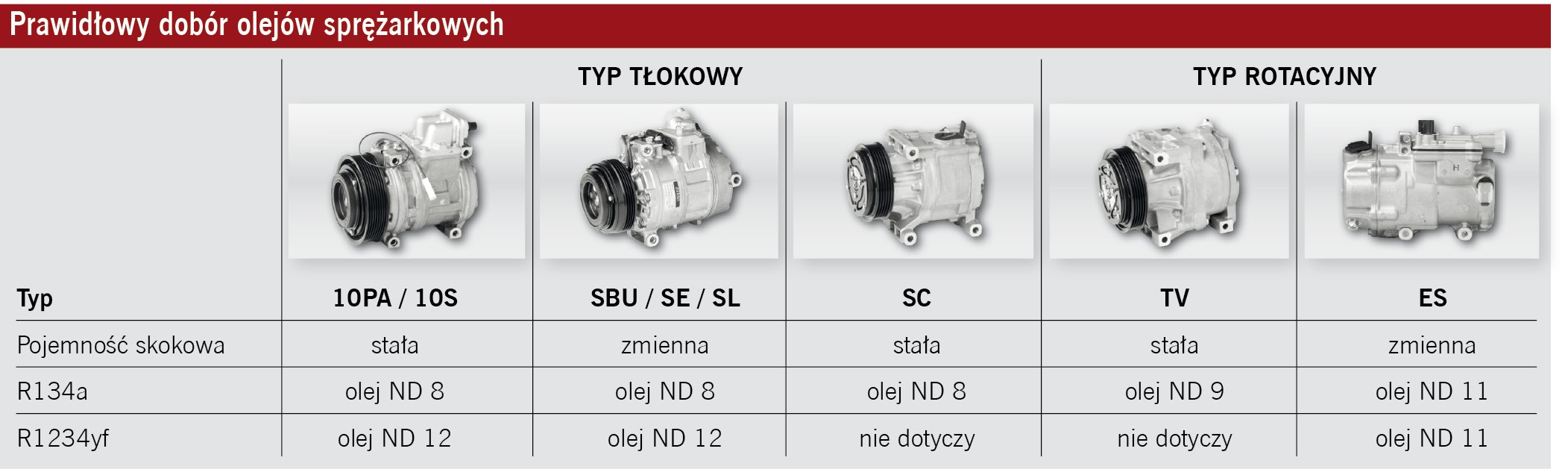 Analiza zgłoszeń gwarancyjnych wykazała, że co czwarty warsztat nie stosuje właściwego oleju PAG do sprężarek klimatyzacji Denso. Używanie niewłaściwych olejów, takich jak oleje uniwersalne lub mieszane, nieuchronnie prowadzi do uszkodzenia sprężarki, ponieważ oleje uniwersalne należą do grupy PAO lub do produktów mineralnych o innej lepkości niż syntetyczne oleje PAG. Odmienne oleje nie mieszają się ze sobą ani każdy z osobna z czynnikami chłodniczymi R134a oraz R1234yf, co prowadzi do złego smarowania, uszkodzenia uszczelek i przyspieszonego zużycia sprężarki. Niewłaściwa lepkość sprawia, iż między cylindrem a tłokiem tworzy się cieńsza warstwa oleju.