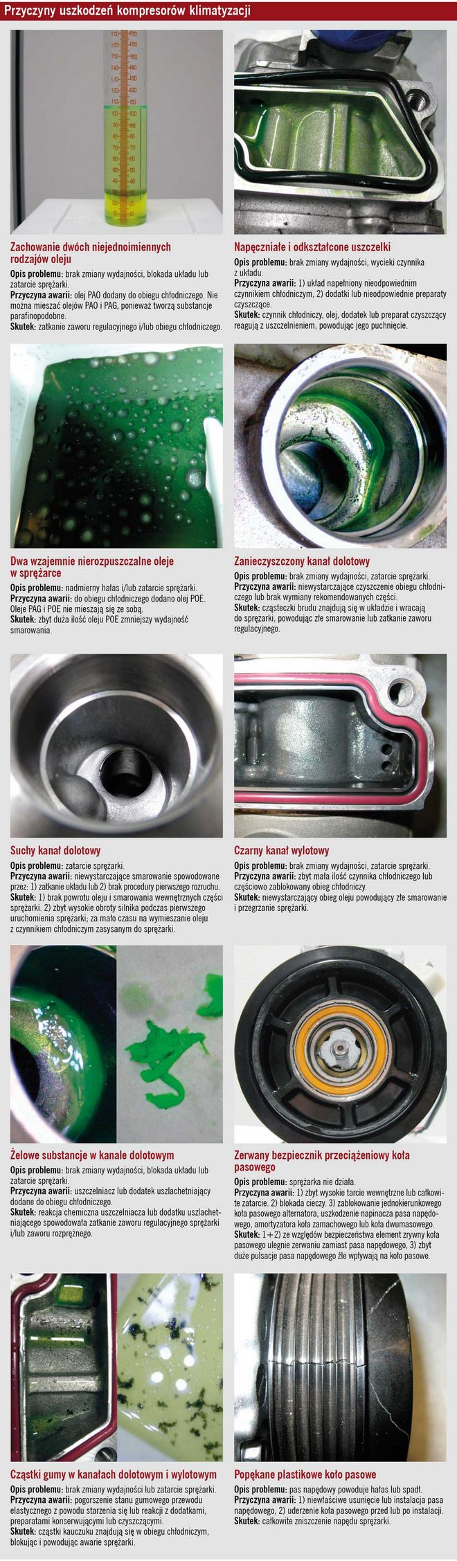 Niemal 100% wszystkich awarii sprężarek nie wynika z ich wad fabrycznych, lecz z przyczyn występujących na zewnątrz tego podzespołu. Należą do nich najczęściej: