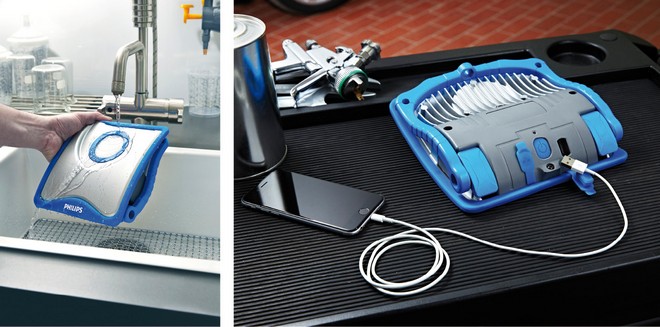 Producent wyposażył PJH20 w złącze USB, dzięki któremu można dodatkowo podładować... smartfon. Oczywiście lampa jest przystosowana do pracy w warunkach warsztatowych, czyli wykazuje odporność na uderzenia (norma IK09), wodę i kurz (norma IP67).