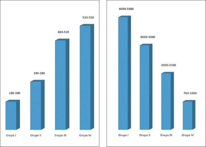 Rys.2, 3. Po lewej: odporność na oksydację (odparowywanie oleju) dla typowych olejów bazowych (150 N) różnych grup w teście RBOT (min). Im wyższa, tym lepiej; po prawej: lepkość baz olejowych (150 N) z różnych grup w temperaturze –25°C(cP). Im niższa, tym lepiej