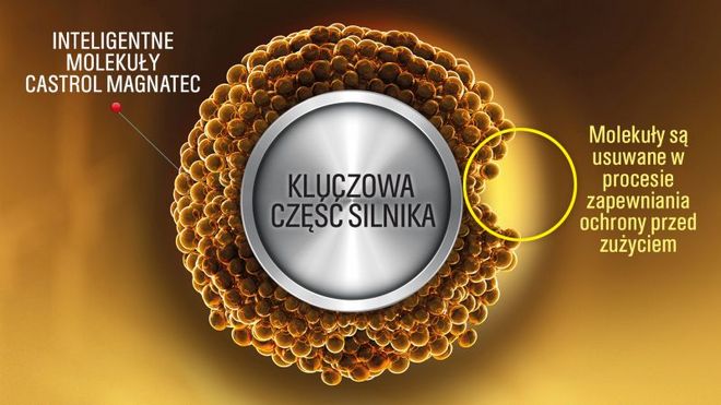 Dlatego też Castrol oferuje dodatkową ochronę silnika w postaci oleju Magnatec Stop-Start. Zawiera on molekuły, które przywierają do kluczowych części silnika, tworząc samoregulującą się warstwę ochronną. Oznacza to, że nawet jeśli molekuły zostaną usunięte, kolejne szybko zajmą ich miejsce.