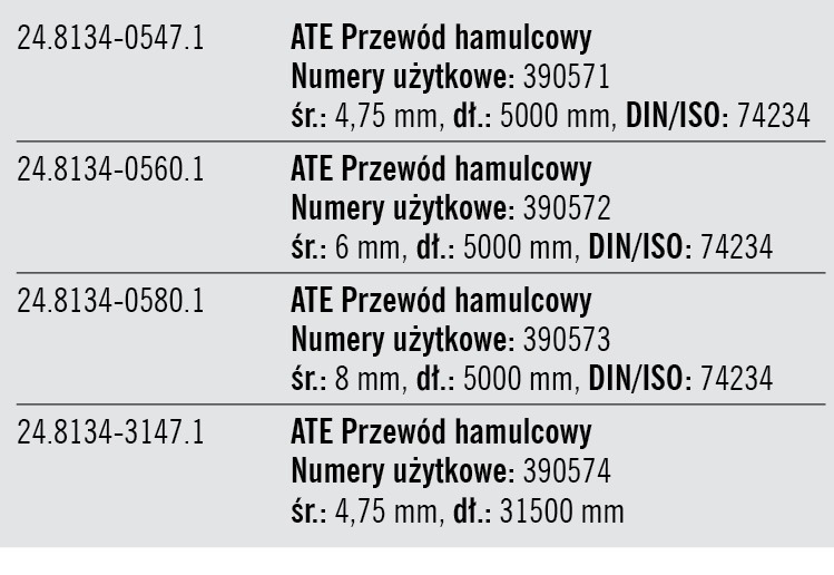 Mało kto bowiem wie, że przewody hamulcowe sztywne, identyczne z oryginalnymi stalowymi, są dostępne na rynku również w szpulach zawierających odcinki o długości 5 lub 31,5 m. Jest to produkt gotowy do formowania końcówek i krzywizn równie łatwo, jak w przypadku rurek miedzianych. Jego profilowanie możliwe jest bardzo często bez używania dodatkowych narzędzi (nie dotyczy to formowania końcówek), ponieważ dwuścienna rurka pozwala na dowolne gięcie bez załamania przewodu. Jednak specjalne przyrządy czynność tę ułatwiają, zapewniając efekty identyczne, jak w przypadku stalowych przewodów oryginalnych. W dodatku takie przewody stalowe są od miedzianych tańsze.