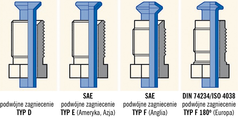 Najprostszy z nich jest najchętniej stosowany przez warsztatowych mechaników (typ D), lecz producenci pojazdów zazwyczaj go unikają, gdyż najłatwiej przy nim może dojść do wysunięcia się przewodu z nakrętki mocującej i rozszczelnienia układu hamulcowego. Pół biedy, jeśli użytkownik samochodu w porę zauważy wyciek płynu i niezwłocznie zgłosi reklamację w warsztacie. W przeciwnym razie zaistniała "bieda" może być niewspółmiernie gorsza od tej swojej "połowy"!