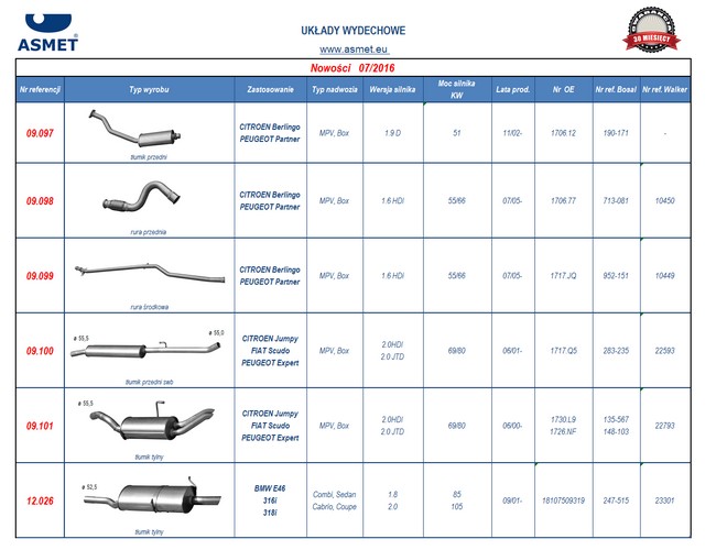 Oferta firmy Asmet (www.asmet.eu) powiększyła się o 6 nowych elementów układów wydechowych.