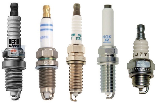 Świece zapłonowe od lewej: Beru, Bosch, Denso, NGK, Champion