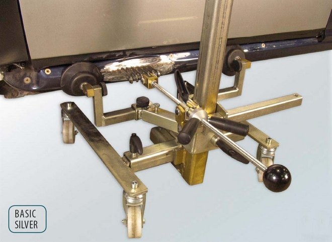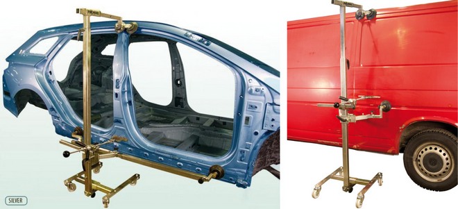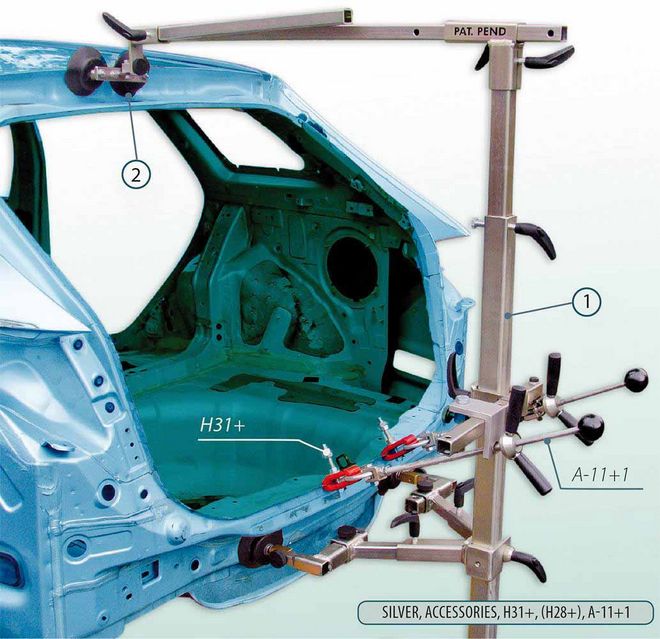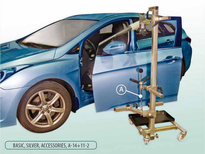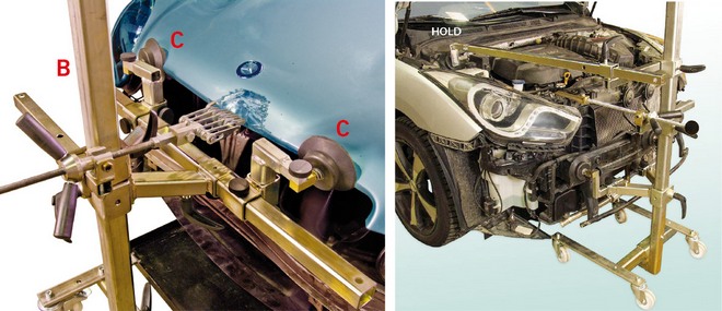 Wyciąganie wgnieceń przedniej części pojazdu jest dokonywane poprzez montaż górnej podpory, na przykład do przedniego pasa nadwozia lub gniazd kolumn McPersona.
