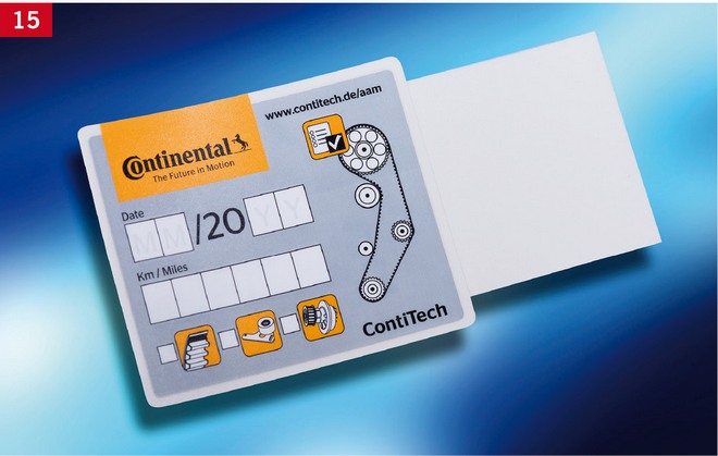 Wymianę oryginalnego paska rozrządu ContiTech zapisuje się na dostarczonej firmowej naklejce i umieszcza się ją w komorze silnika (zdj. 15). Na koniec należy uruchomić silnik i wykonać jazdę próbną.