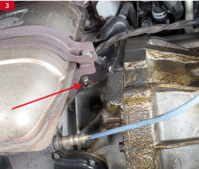 W pierwszej kolejności trzeba wymontować zbiorniczek płynu wspomagania układu kierowniczego, ale nie należy przy tym odłączać jego elastycznych przewodów. Potem demontuje się pasek napędu urządzeń pomocniczych i koło pasowe pompy układu chłodzenia oraz górną i dolną pokrywę rozrządu. Następnie konieczne jest wymontowanie przedniej poduszki silnika i jego wspornika.