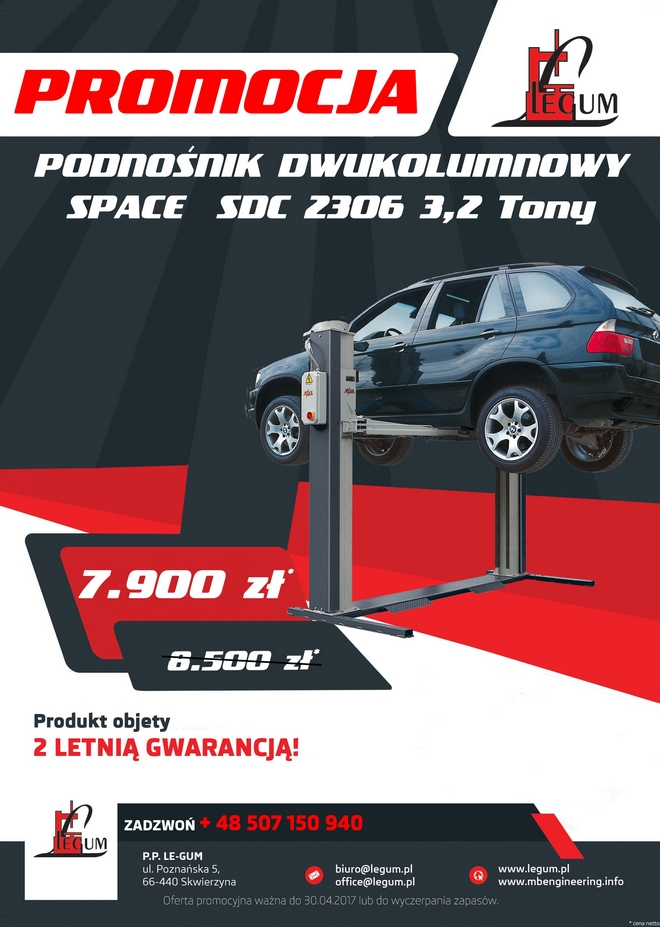 Firma Le-Gum ogłasza sezonową promocję na dwukolumnowe podnośniki włoskiej marki Space.