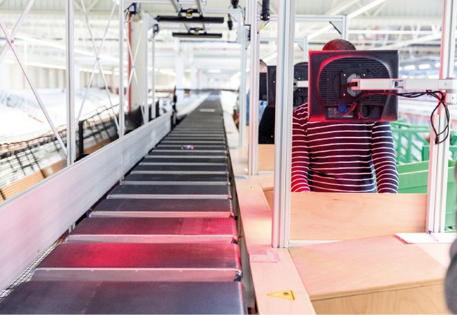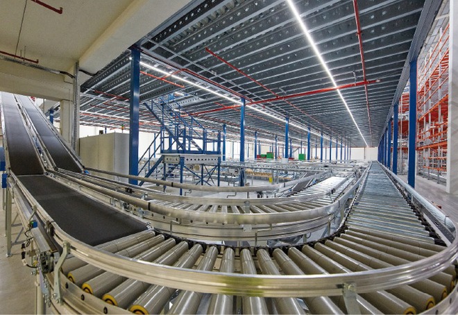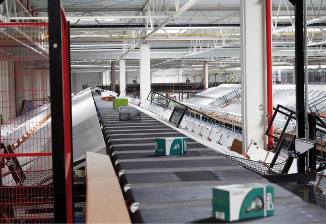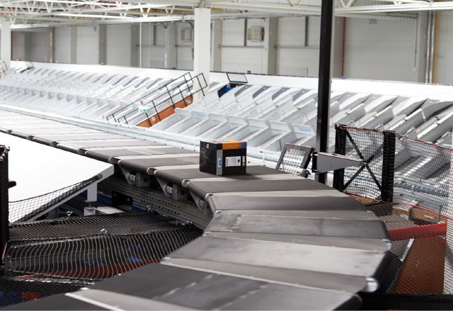 Najważniejszą częścią inwestycji jest zainstalowany w głównej hali system przenośników o długości 11 km. To one realizują samoczynnie sortowanie towarów z oddzielnych stacji dostaw i zwrotów. Z taśmociągów sorter (tzw. crossbelt sorter) mechanicznie rozdziela opakowania towarów przeznaczone dla poszczególnych odbiorców przesuwając je na liczne transportery poprzeczne odpowiadające określonym kierunkom wysyłki.
