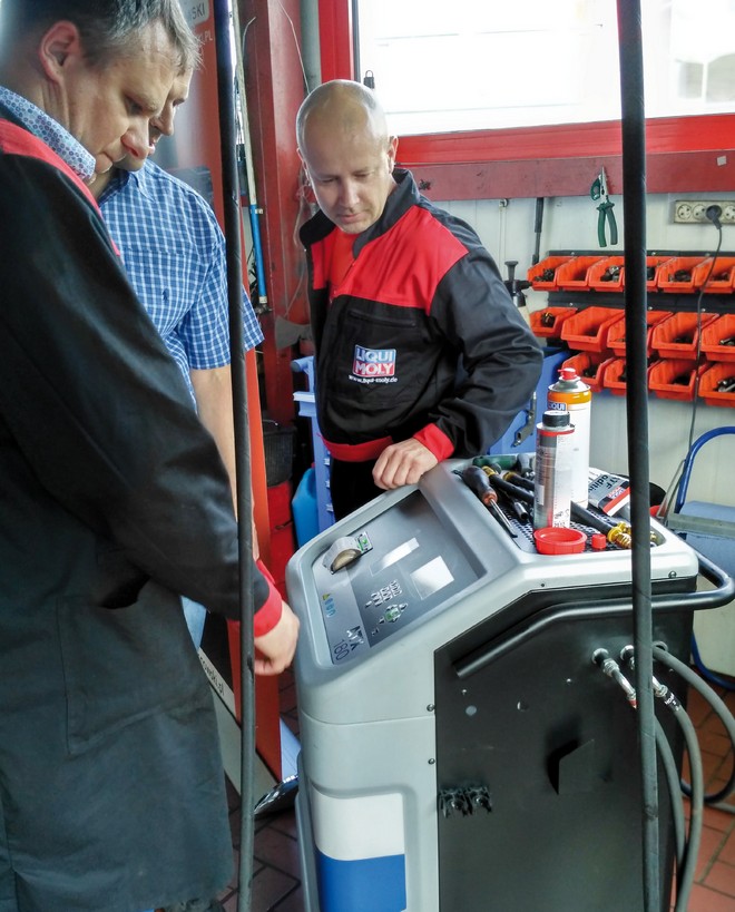 Zajęcia teoretyczno-praktyczne na temat dynamicznej wymiany oleju zorganizowane przez specjalistów Liqui Moly i Mahle w firmie Sosnowski w Gdańsku