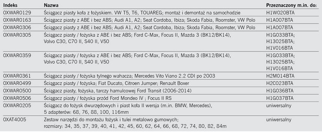 Ściągacze przeznaczone do piast drugiej generacji znajdują się w ofercie narzędziowej Inter Cars SA. W poniższej tabeli przedstawiamy najbardziej popularne ściągacze oraz ich zastosowania.