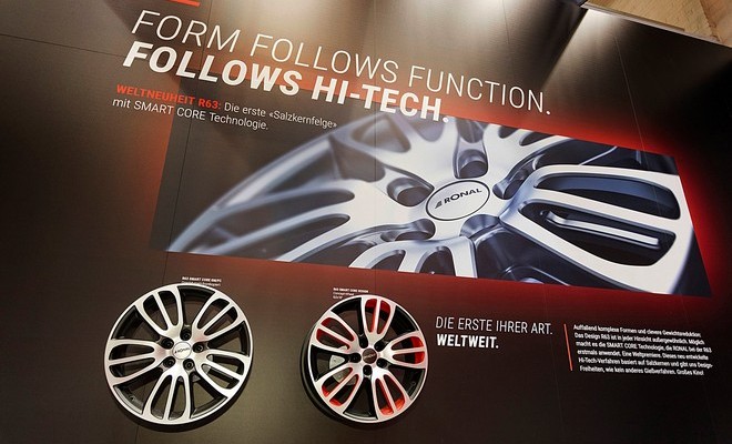 W hali 11 na stanowisku D119 prezentowane były obręcze marek Ronal, Speedline Corse i Speedline Truck. Odbyła się też światowa premiera nowej technologii Smart Core, zastosowanej przy wytwarzaniu obręczy Ronal R63. W procesie produkcyjnym rdzenie odlewnicze z soli umieszczane są w kokili, zalewane aluminium, a następnie wypłukiwane wodą. Taka technika pozwala na wykonywanie zaawansowanych kształtów wewnątrz obręczy i zapewnia bardzo zróżnicowane wzornictwo.