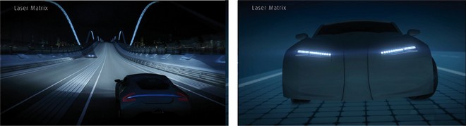 Doskonałym uzupełnieniem matrycy LED są laserowe źródła światła, zapewniające ekstremalnie daleki zasięg świateł (liczony w setkach metrów), co bardzo podnosi poziom bezpieczeństwa w czasie nocnej jazdy po autostradach, gdzie wysoka prędkość pozostawia kierowcy minimalny czas na reakcję.