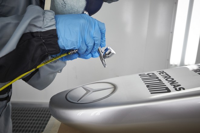 Na przestrzeni kończącego się sezonu lakierowanych jest tysiące różnych elementów. Bywały tygodnie, że było ich nawet 150. Dlatego też zespół postawił na produkty Spies Hecker, należące do jednej z trzech globalnych marek lakierniczych Axalta Coating Systems, wiodącego globalnego dostawcy lakierów ciekłych i proszkowych. Lakiery Spies Hecker od ponad czterech lat zdobią charakterystyczne bolidy Srebrnych Strzał. Masa, jakość i trwałość powłoki lakierniczej odgrywają tutaj szczególnie ważną rolę ze względu na trudne warunki panujące na torach podczas wyścigów.