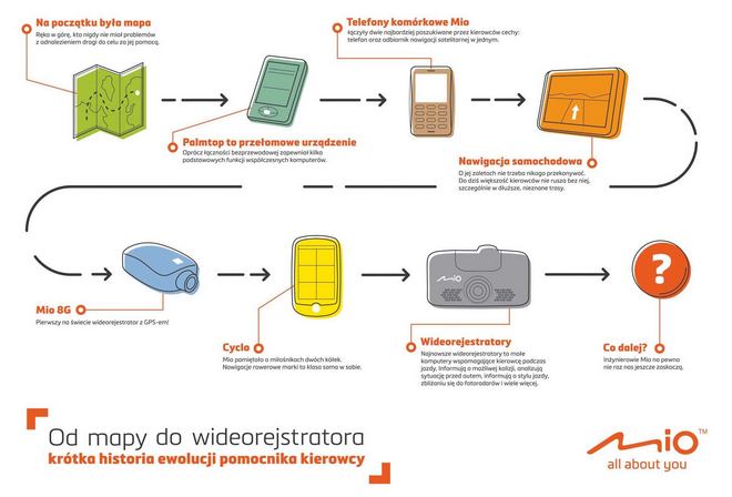 Początek nowoczesnym nawigacjom dali inżynierowie marki Mio, jednego z czołowych producentów elektroniki samochodowej. To do nich należał pionierski pomysł dodania modułu GPS do palmtopa, czym rozpoczęli rewolucję nawigacyjną całkowicie zmieniającą sposób podróżowania.