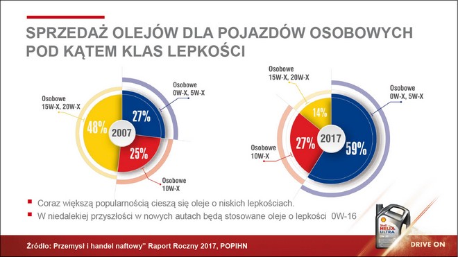 Podstawą formułowanych ocen były przede wszystkim dane raportu rocznego "Przemysł i handel naftowy 2017", opracowanego przez ekspertów Polskiej Organizacji Przemysłu i Handlu Naftowego. Zgodnie z tym dokumentem w 2017 r. sprzedano w Polsce 226 896 ton olejów smarowych, co oznacza wzrost o 1,62% w porównaniu z poprzednim rokiem. Oleje silnikowe dla motoryzacji stanowią obecnie 47,51% wszystkich sprzedawanych w Polsce olejów smarowych, ze znaczącym udziałem olejów dla samochodów osobowych na poziomie 58%, czyli o 11 punktów procentowych więcej niż w 2007 roku.