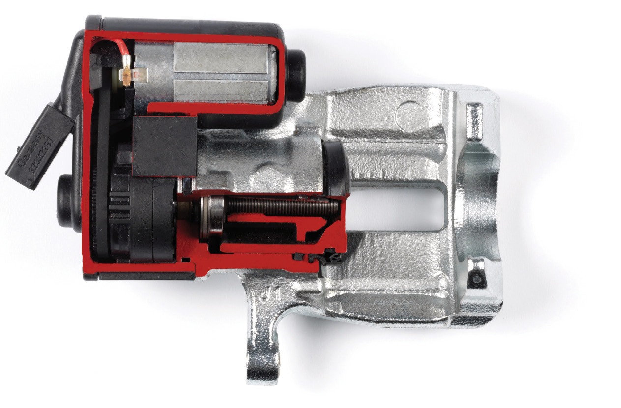 Przekrój EPB osadzonego na zacisku hamulca tarczowego