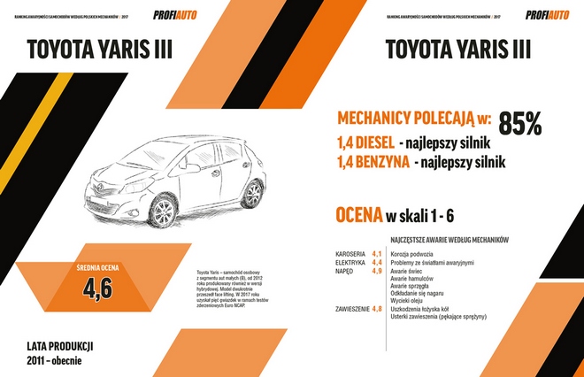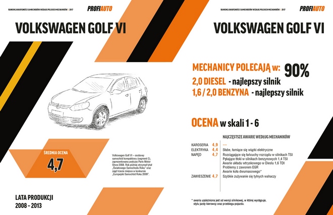 Zestawienie przygotowane przez sieć ProfiAuto to pierwsza tego typu niezależna klasyfikacja w Polsce. Ranking zawiera ocenę poszczególnych modeli w skali od 1 do 6. Jest ona średnią wyliczaną na podstawie ocen cząstkowych, jakie mechanicy przyznawali czterem kluczowym podzespołom: karoserii, elektryce, napędowi oraz zawieszeniu.