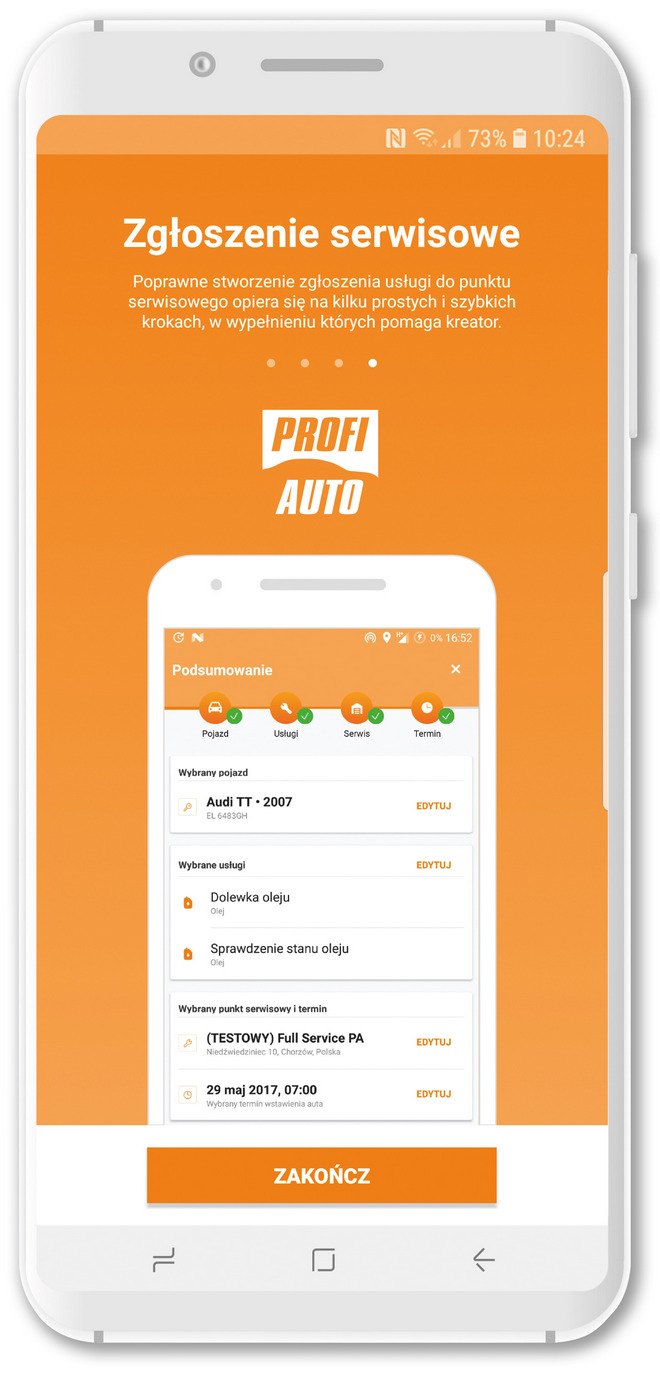 Aplikacja firmy ProfiAuto służy do ułatwienia komunikacji klienta z warsztatem. Zamawianie usług sprowadza się do kilku kliknięć w smartfonie. Użytkownik może również śledzić proces naprawy oraz ma dostęp do zarchiwizowanej historii napraw. Dzięki skanerowi kodów AZTEC kierowcy mogą przesłać warsztatowi dane samochodu, co znacząco skraca czas potrzebny na skompletowanie odpowiedniego zestawu części. Po pozostawieniu pojazdu w serwisie kierowca jest informowany o przebiegu usługi i ma bieżącą kontrolę nad kosztami; wskazuje także dogodny termin odbioru.