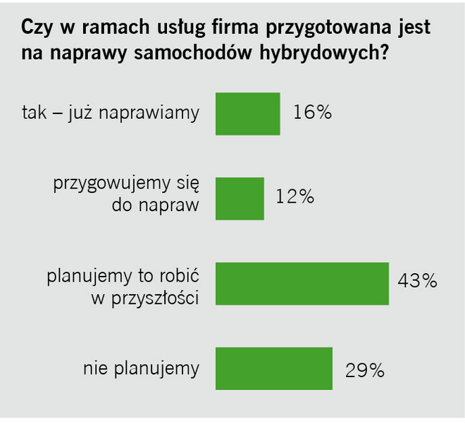 Ważnym problemem technologicznym staje się elektromobilność, którą nasza branża traktuje z wyraźną rezerwą i niepokojem. Przyszłość tych rozwiązań jest wciąż niepewna, a inwestycje w nowe technologie i tworzenie niezbędnej infrastruktury są kosztowne i czasochłonne. Z samej też swej konstrukcyjnej specyfiki auta elektryczne mają średnio o 2 tys. części mniej niż spalinowe, a to oznacza mniejsze przychody z serwisowania. Obecnie optymalnym kompromisem między ekologią a ekonomią jest samochód hybrydowy i jego napraw dotyczą najbardziej ambitne warsztatowe plany. W Polsce dodatkowe przeszkody dla rozwoju elektormobilności stwarza brak infrastruktury oraz wysokie koszty eksploatacyjne.