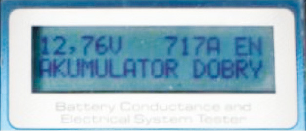 DOBRY: Pozwala na dalszą bezproblemową eksploatację akumulatora, niemniej jednak zaleca się ponowienie testu przed rozpoczęciem kolejnego sezonu letniego lub zimowego.