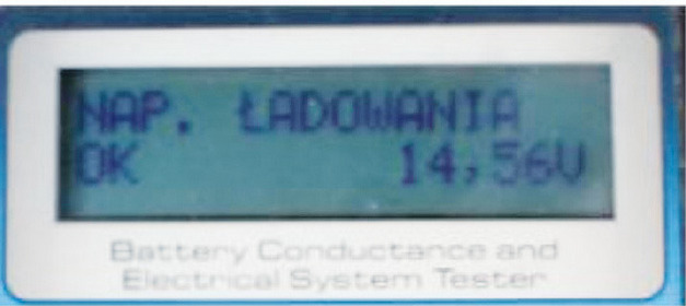 Badany jest poziom napięcia prądu ładowania ze strony alternatora.