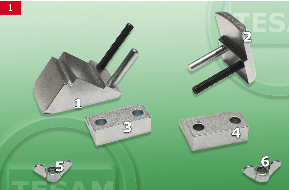 1, 3. adapter do zdejmowania paska alternatora, 2, 4. adapter do zakładania paska alternatora, 5, 6. Nakrętki kontrujące