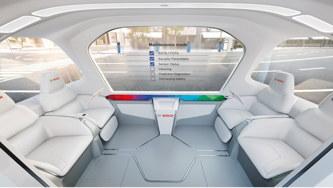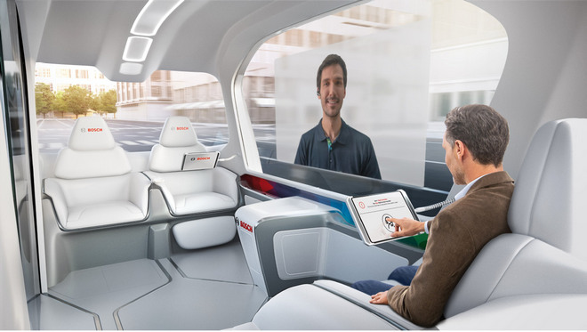 Elektryczne pojazdy do przewozu osób bez kierowcy pozwolą użytkownikom korzystać z niemal bezemisyjnego, a także bezpiecznego transportu. Bosch rozwija i produkuje m.in. czujniki radarowe, czujniki wideo i czujniki ultradźwiękowe, układy regulacji dynamiki jazdy oraz elektryczne układy wspomagania kierownicy, które są wykorzystywane w samochodach zautomatyzowanych. Dzięki inteligentnym usługom informacji o stanie dróg zautomatyzowane pojazdy wiedzą, jaki jest stan nawierzchni na danej trasie. Mogą więc odpowiednio wcześniej dopasować styl jazdy, aby zapewnić bezpieczeństwo pasażerom.