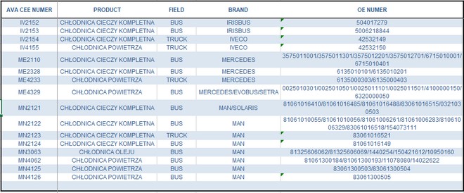 Produkty mają zastosowanie w autobusach i ciężarówkach marek Iveco, MAN, Mercedes, Irisbus oraz Solaris.