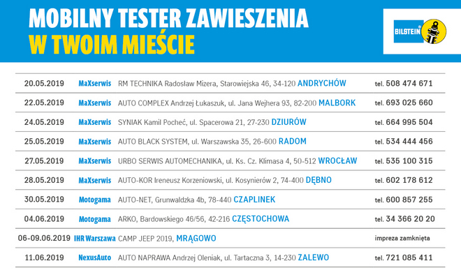 Od czterech lat firma Bilstein prowadzi w Polsce kontrole zawieszenia samochodu za pomocą mobilnego testera. Akcja odbędzie się także w tym roku.