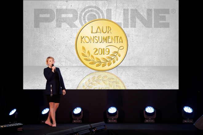 Magdalena Ryś, przedstawicielka kapituły programu Laur Konsumenta informuje o wyróżnieniu marki Proline "Złotym Laurem Konsumenta"