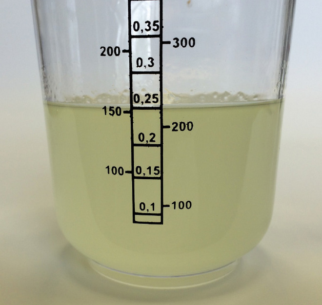 Stan po upływie 1 godziny – widoczne ponowne rozwarstwienie dwóch typów olejów