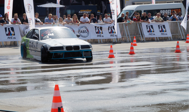 Drift w wykonaniu 500-konnego BMW był widowiskową konkurencją dla widzów, a pasażerom zapierał dech w piersiach