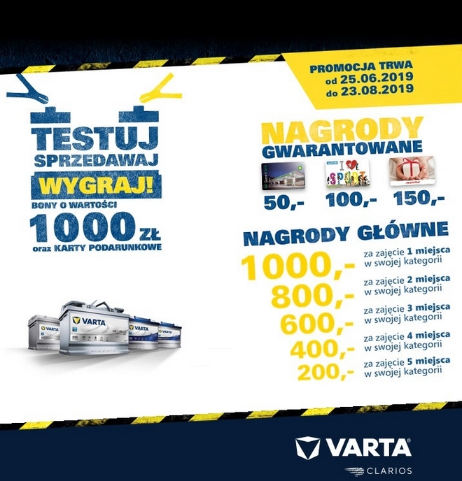 Promocja trwa do 23 sierpnia. Wszystkie serwisy, które do 6 września prześlą do firmy Johnson Controls Akumulatory co najmniej 50 poprawnie wypełnionych testów (raportów z testu oraz wydruków z testera), otrzymają nagrody gwarantowane w postaci kart podarunkowych BP, Media Markt lub Decathlon.