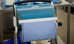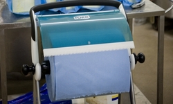 Wyposażony w kółka podajnik czyściwa Tork Perfomance Floor Stand Mobile wykorzystuje duże rolki włókniny i łatwo daje się przesuwać z miejsca na miejsce.